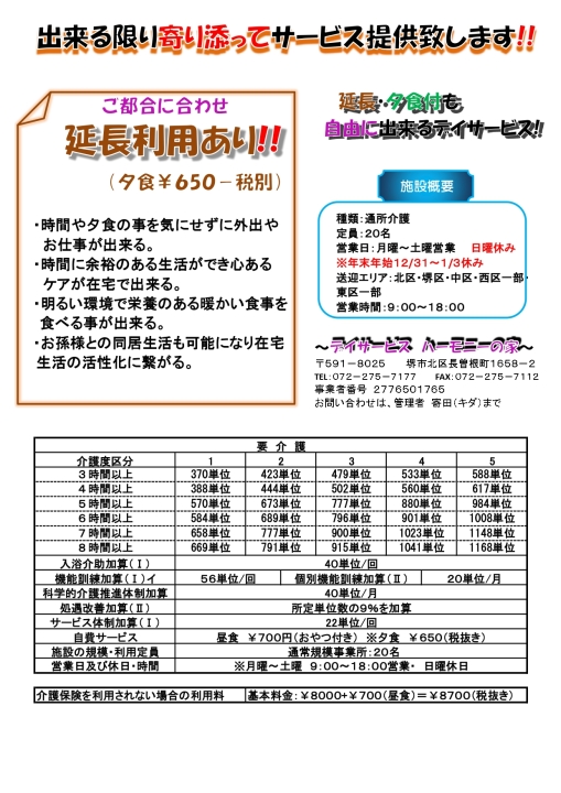 🌸デイサービス ハーモニーの家 問い合わせ先