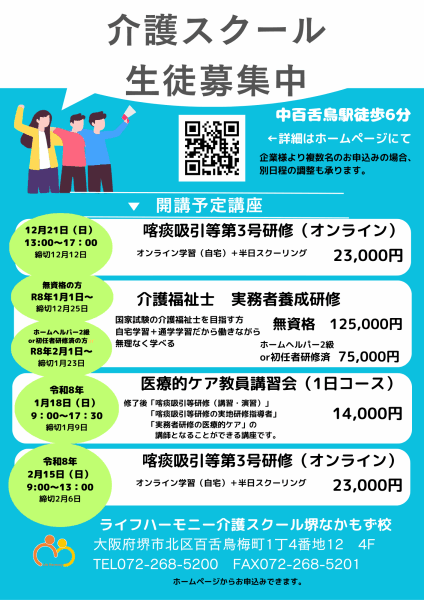 🌸ライフハーモニー介護スクールのお問い合わせ先